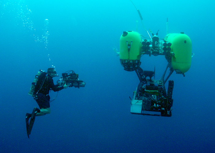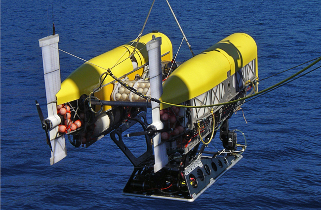 為了增加對深海的了解,伍茲霍爾海洋研究所的科學家和工程師們與2008年設計了一款更高效、多功能的混合動力潛水器“海神”號,這款潛水器可以在深海極端環境下進行作業。這臺遠程遙控潛水機器人以希臘神話中的海神“Nereus”命名,全名Hybrid Remotely Operated Vehicle Nereus。 “海神”號(Nereus)是一臺混合型遙控潛水器(HROV),能夠在世界各地從6000-11000米的超深淵(hadal depths)作業,曾在2009年下潛到“挑戰者深淵”(Challenger Deep)。“海神”號是世界上第三個到達馬里亞納海溝底部的潛水器。“海神”號之所以稱作混合動力潛水器,是因為它可以以兩種方式進行操作。它以遠程控制、系纜模式操作、以自由游動的自治模式操作時,可把它變成一臺有纜遙控潛水器或無纜自治潛水器。此時,它可以調查海底深度、描繪海底地圖,以及拓寬科學家的觀察范圍。當“海神”號發現了科學家們感興趣的東西,它可以返回母船,變成遠程操縱潛水器(ROV),即用一根光纖電纜將“海神”和母船連在一起。“海神”可以通過這根電纜傳遞高清晰度的實時視頻和接受來自母船上潛航員的命令,采集樣品或用機器手臂進行實驗。因為能夠在這兩種操作模式之間切換,“海神”號能夠在洋底執行大量的任務,包括測繪、搜集巖石和沉積物樣本、捕捉海底生物、對海底化學物質和還是取樣、拍攝照片等。