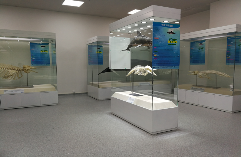 鯨豚標(biāo)本館簡介:鯨豚標(biāo)本館于2017年初步建成并正式對公眾開放,是目前國內(nèi)為數(shù)不多專門展示鯨豚標(biāo)本的平臺。目前展示的7副鯨豚標(biāo)本中,包括中華白海豚骨骼標(biāo)本1副,小抹香鯨皮質(zhì)和骨骼標(biāo)本各1副,短肢領(lǐng)航鯨皮質(zhì)和骨骼標(biāo)本各1副,長吻飛旋海豚皮質(zhì)和骨骼標(biāo)本各1副。全部鯨豚標(biāo)本均為在海南島周邊擱淺死亡的個體,其中中華白海豚標(biāo)本以及小抹香鯨標(biāo)本均為相應(yīng)物種在海南島發(fā)現(xiàn)的首個擱淺死亡個體。