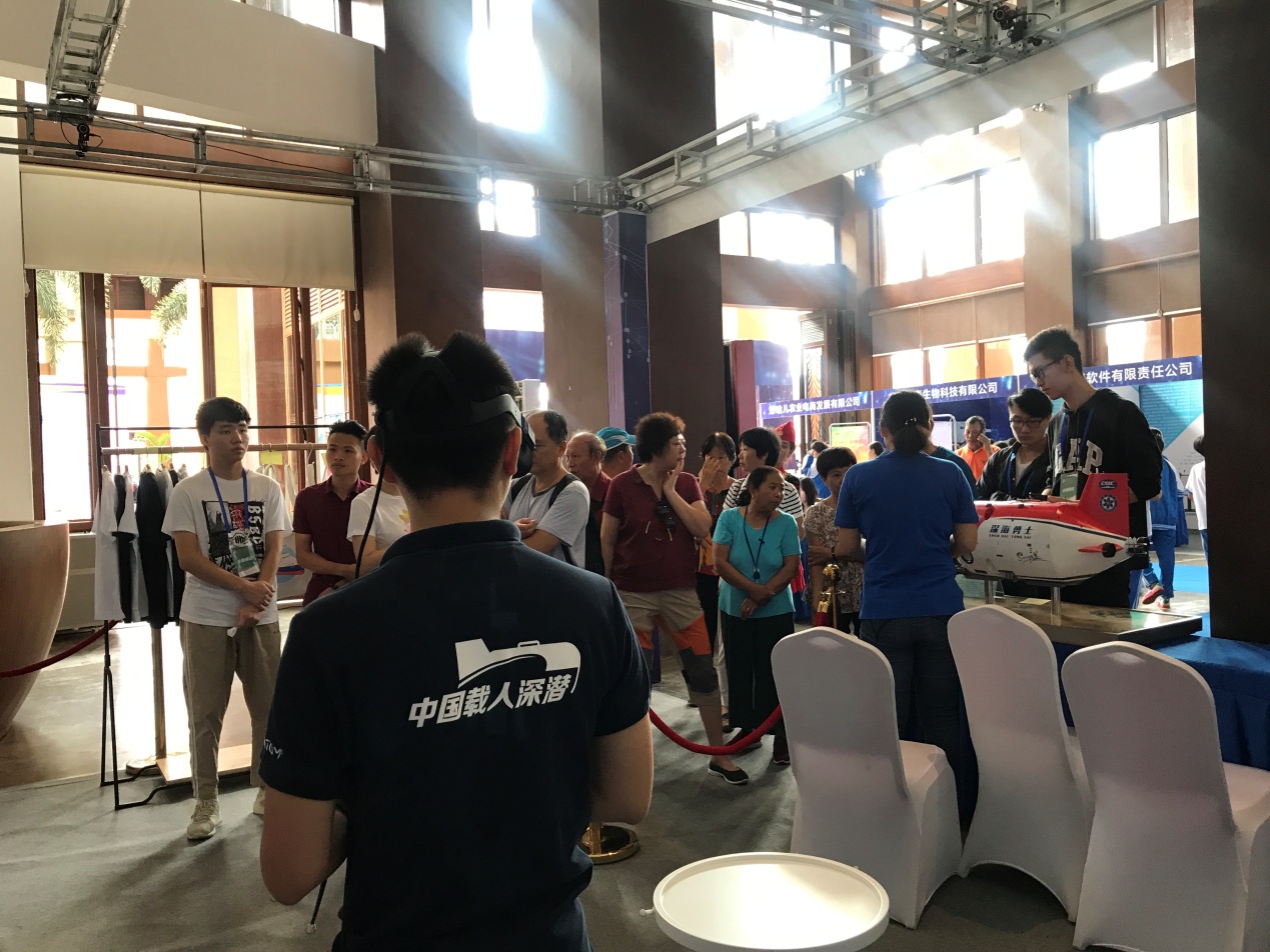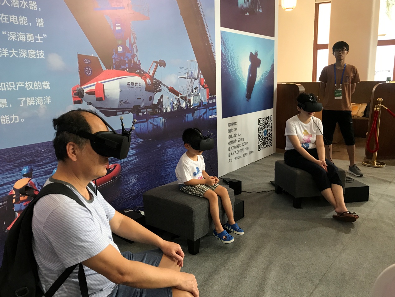 會展中,中科院深海所通過虛擬現實技術,多維解析我國擁有自主知識產權的載人潛水器“深海勇士”號,親身體驗跟隨潛器“下潛”到深海,同時配合“深海勇士”號模型、深??瓶枷盗屑o念品,幫助觀眾了解載人潛水器深??瓶嫉淖鳂I場景、海洋資源開發前景與我國深海譜系化裝備自主創新能力。