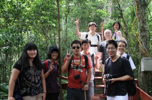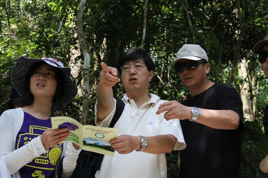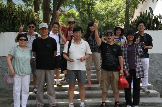 5月11日上午8時(shí)許出發(fā),經(jīng)過(guò)兩小時(shí)二十分的車程,登山隊(duì)伍順利抵達(dá)了五指山下。在真正看到素有海南島象征的五指山后,大家都被眼前的美景所陶醉,放眼望去,群山環(huán)繞,云海茫茫。在觀山臺(tái)正面眺望五指山,五峰并列如擎天五指,在云海中時(shí)隱時(shí)現(xiàn),盡收眼底。隨著一聲令下,大家迅速收拾起陶醉的心情,開始向頂峰攀登。景區(qū)內(nèi)古樹參天,巨石嵯峨,藤蘿密布,奇花異草隨處可見,大家一邊登山,一邊欣賞著美景,心情格外的舒暢歡愉。途中歡聲笑語(yǔ)不時(shí)響起,團(tuán)隊(duì)氣氛輕松融洽,在一些陡峭難行的路段,大家相互幫助,你托我扶,處處體現(xiàn)著同事間的關(guān)愛(ài)和團(tuán)隊(duì)協(xié)作精神。隨著時(shí)間的推移,腳力好的隊(duì)員沖鋒在前,已尋不到蹤影。午后一點(diǎn),天空逐漸陰了下來(lái),不時(shí)有點(diǎn)點(diǎn)雨星落下,看著遠(yuǎn)遠(yuǎn)的山峰,腳下盤根錯(cuò)節(jié),蜿蜒陡峭的山路,為了安全起見,大家決定簡(jiǎn)單休整后下山。當(dāng)聚在半山腰,圍坐在一起,盡情領(lǐng)略著熱帶原始森林的秀美,享受著精美的午餐時(shí),大家忘卻了登山的勞頓,說(shuō)說(shuō)笑笑,儼然成了這美景中的一部分。沖在前面的兩名隊(duì)員遲遲未能回歸,經(jīng)過(guò)一番聯(lián)系,電話那頭傳來(lái)興奮、驚喜地聲音,原來(lái)他們已經(jīng)登上了最高峰……下午四時(shí)許,12名隊(duì)員在回程的路上熱鬧的交流著登山的感受,兩名登到頂峰的隊(duì)員,更是激動(dòng)興奮地給大家講頂峰奇特瑰麗的風(fēng)景,聽得大家仿佛置身其中一斑。