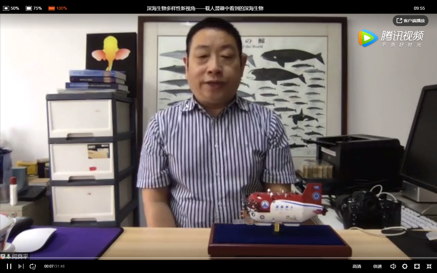 深海所通過今日頭條和抖音在線直播了我國4500米級載人潛水器“深海勇士”號以及鯨豚標本館,為公眾奉上了一場深??茖W盛宴,為豐富活動形式,與觀眾互動,還增加了直播間有獎問答環節,總訪問量高達12.9萬;同時,生物學研究室的何舜平研究員為大家準備了科學公開課《深海生物多樣性新視角——載人潛器中看到的深海生物》,播放次數達1382;深海所全景AR滿足了公眾足不出戶就可以參觀深海所的愿望,點擊量達6142。
