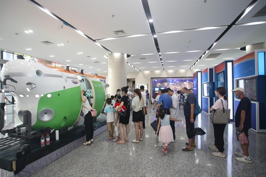 “奮斗者”號(hào)模型前排隊(duì)等候打卡的市民游客