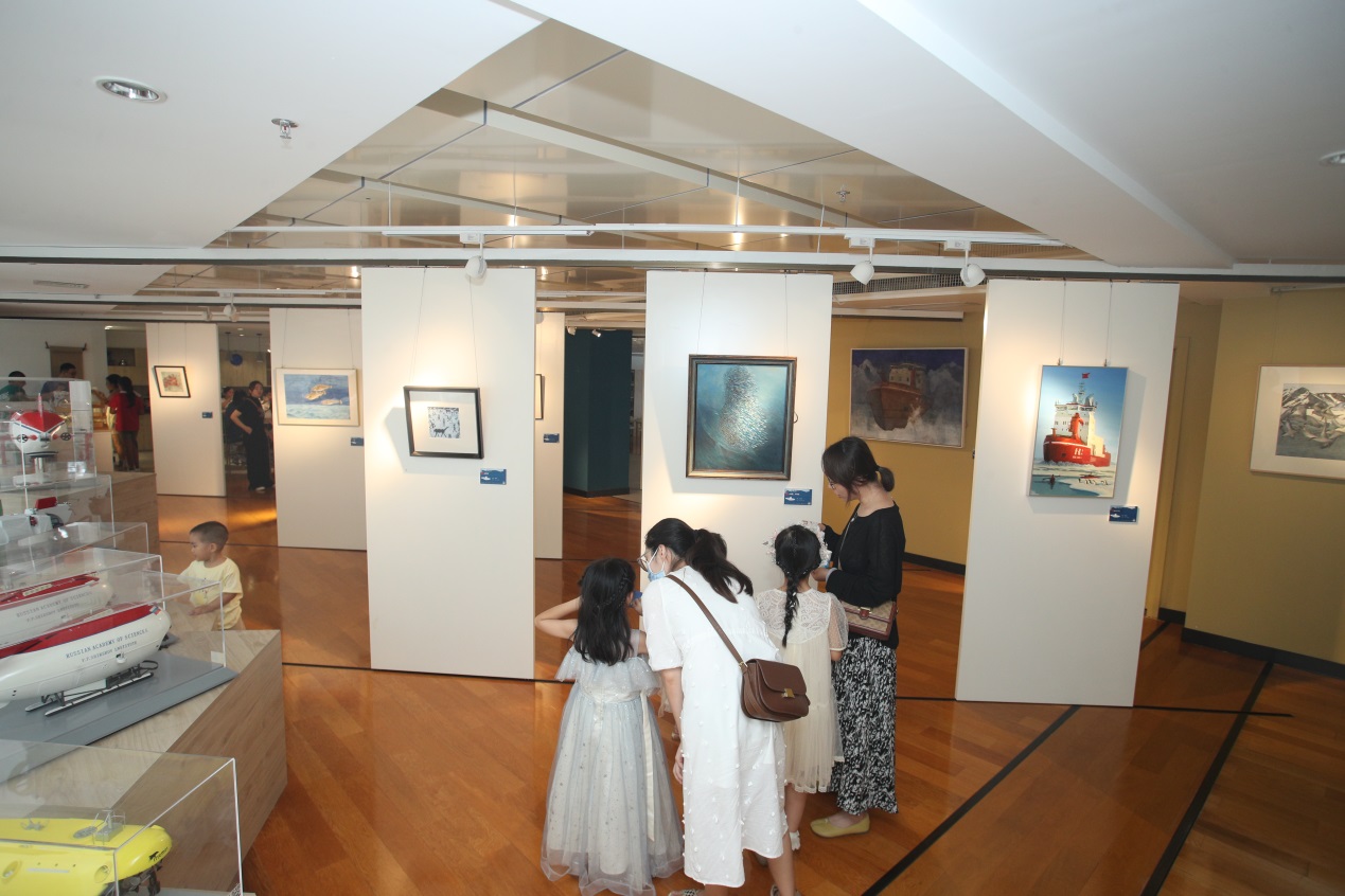 而在深海空間的科學(xué)與藝術(shù)圖書館,“極地·深藍(lán)”藝術(shù)與海洋畫展備受歡迎,有別于其他活動(dòng)場(chǎng)地,在這里,公眾可以放慢腳步,靜靜欣賞畫作的精美和想象力。