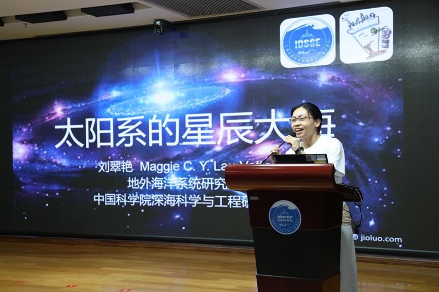 本次活動(dòng)分為四個(gè)場(chǎng)次,每個(gè)場(chǎng)次都精心安排了科普講座。劉心成首席顧問(wèn)為大家講述《我國(guó)建設(shè)海洋強(qiáng)國(guó)戰(zhàn)略的偉大實(shí)踐》,劉翠艷研究員帶領(lǐng)大家走出地球,漫游太陽(yáng)系中其他星體上的海洋世界,程南飛助理研究員生動(dòng)地向大家展示幾個(gè)實(shí)驗(yàn)?zāi)M的有趣現(xiàn)象,科普專員孔秀則帶領(lǐng)大家一同搭乘載人潛水器下潛到馬里亞納海溝的萬(wàn)米深淵,見(jiàn)識(shí)那些千奇百怪的生命。講座現(xiàn)場(chǎng)座無(wú)虛席,過(guò)道甚至門口擠滿了旁聽(tīng)生,小朋友們則坐滿講臺(tái)周邊。