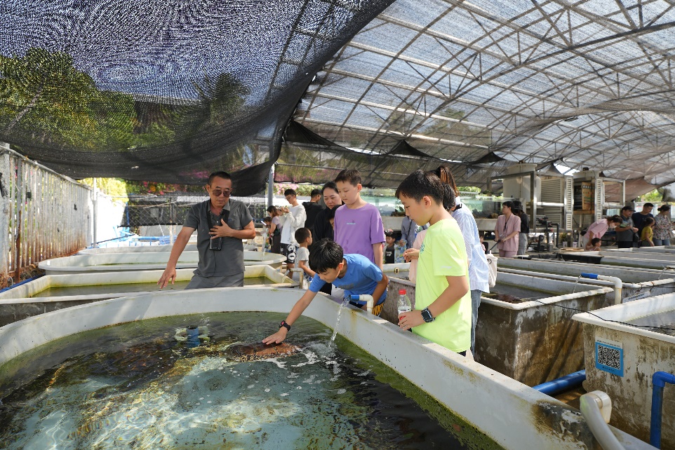 “從大海到星辰”活動的海南分會場在中國科學院深??茖W與工程研究所舉辦,總計1800余人到深海所參加了活動?;顒悠陂g,向市民開放了工程實驗室、珊瑚礁生態模擬實驗室、海洋生物繁育岸基實驗基地、鯨豚標本館等場館,人們走進工程實驗室,圍繞海試裝置和設備,詢問實驗設備的原理;參觀了珊瑚、硨磲、玳瑁等活體生物,以及大大小小、不同種類的海洋生物標本,并與科研人員展開討論。