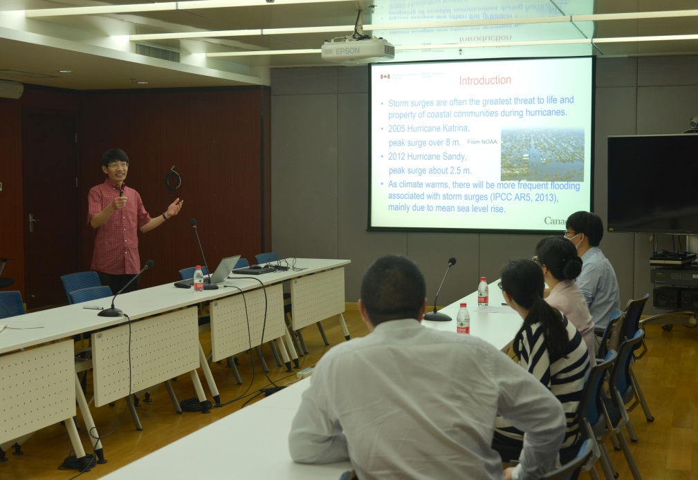 12月6日至7日,應海洋環流觀測與數值模擬研究室邀請,加拿大漁業與海洋部韓國其教授訪問中科院深海所,就風暴潮監測、海岸帶數值模擬等問題與科研人員進行交流,并做了題為“Using satellite altimetry to enhance monitoring and simulation of storm surges”的學術報告。
