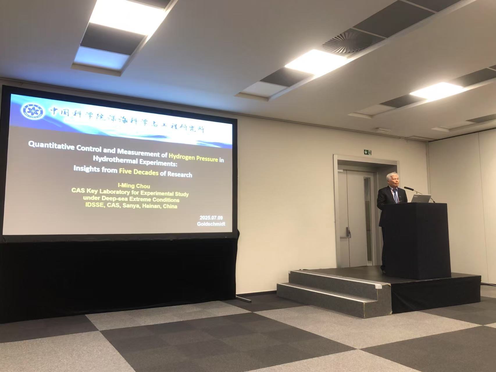 近日,深海極端環(huán)境模擬研究實(shí)驗(yàn)室周義明研究員等一行5人參加了2025年戈?duì)柕率┟芴貢?huì)議(Goldschmidt Conference),4人作了口頭報(bào)告,1人作了墻報(bào)展示。周義明研究員在會(huì)上介紹了水熱實(shí)驗(yàn)中氫氣壓力的定量控制與測量技術(shù)。