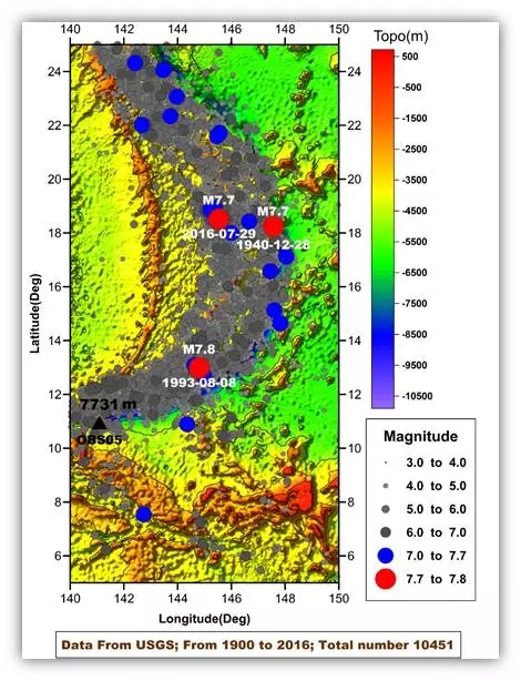 小編還記得,去年7月30日凌晨,探索一號(hào)“處女航時(shí)所布放的5臺(tái)海底地震儀,就成功記錄了當(dāng)天05:18發(fā)生在馬里亞納海溝的7.7級(jí)天然地震。震中距約970 km。(厲害吧,真的能測(cè)到地震)