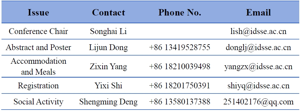 a. Sanya Serenity Marina Hotel is the designated hotel for this conference which is next to the conference venue. Attendees will pay their own accommodation expenses and can contact the conference team to make reservations before the conference starts. For reservations please contact: Zixin Yang, Tel. +86 18210039498, Email: yangzx@idsse.ac.cn.