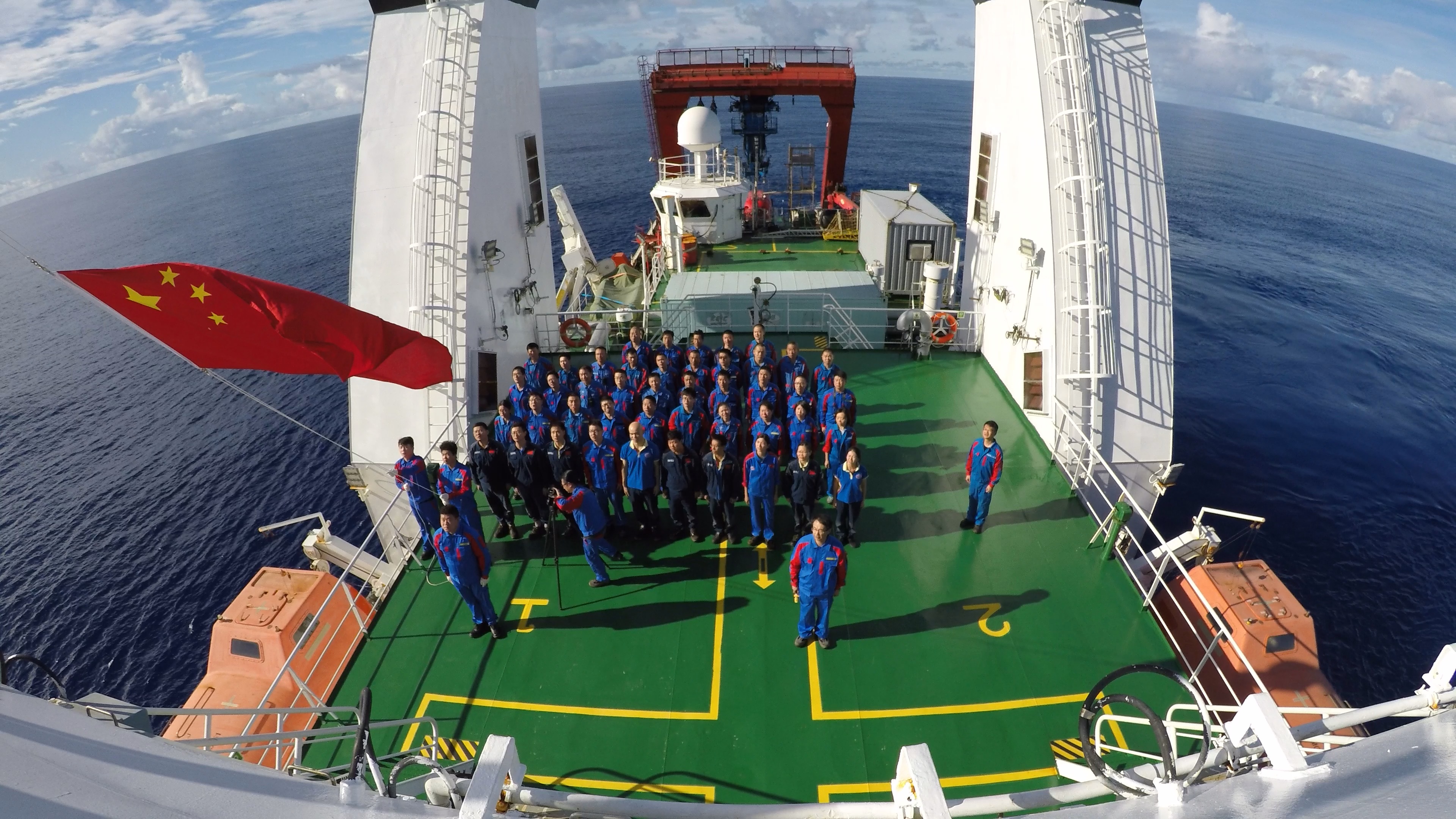 中科院深潛科考隊舉行慶祝中華人民共和國成立70周年升國旗儀式