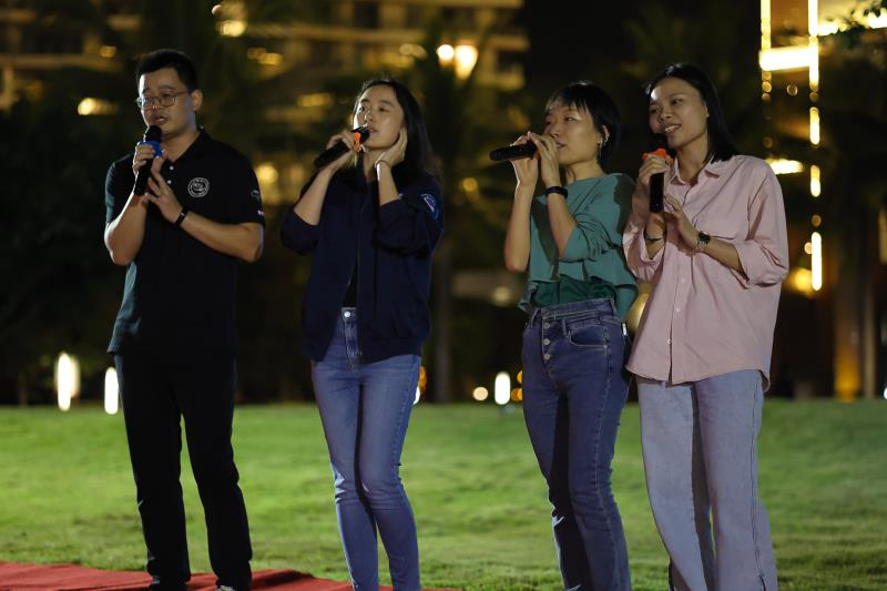 隨后,工程部黃文健演唱了歌曲《天高地厚》,潛航員楊雨辰進(jìn)行了小提琴串燒彈奏,悠揚(yáng)的小提琴在草地上久久回蕩。接下來,探索一號船和探索二號船團(tuán)隊(duì)分別帶來了歌曲《中國人》《真心英雄》《可可托海的牧羊人》《一生中最愛》,讓全場感受到了探索團(tuán)隊(duì)的力量。諾亦騰的吳祎和物業(yè)分別帶來《Melody》和《不放棄》歌曲,人事教育處合唱了動(dòng)聽的《我只在乎你》,海裝中心唐古拉山主任帶來了《暗香》歌曲。