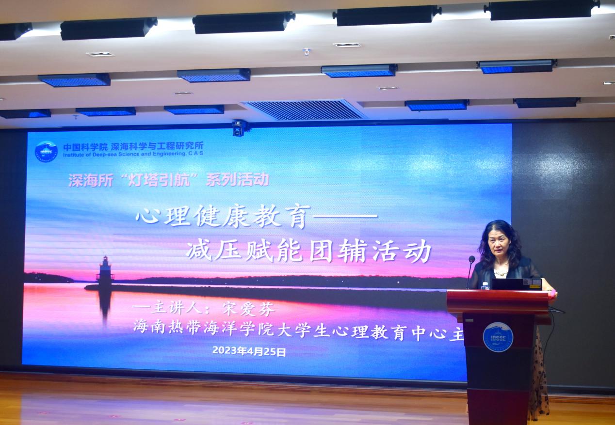 為關愛深海所研究生心理健康、緩解學生心理壓力,4月25日下午,人事教育處特邀海南熱帶海洋學院大學生心理教育中心主任宋愛芬教授來所開展“燈塔引航”系列活動第十三講。