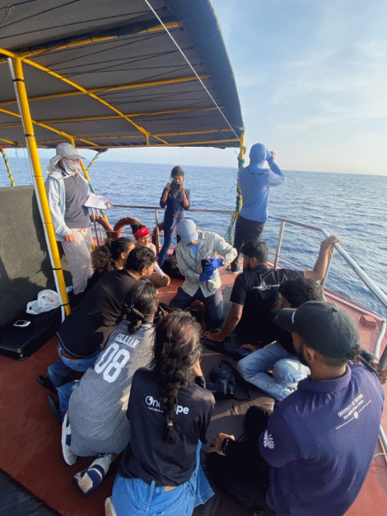 3月29日,由訪問(wèn)團(tuán)與NARA合作開(kāi)展的“中斯聯(lián)合海上鯨類(lèi)科考調(diào)查”航次完成全部調(diào)查任務(wù),順利返程。航次歷時(shí)7天,采用目視和聲學(xué)相結(jié)合的方法對(duì)斯里蘭卡南部海域鯨類(lèi)資源展開(kāi)了初步調(diào)查。該航次共目擊到鯨類(lèi)動(dòng)物23群次,包括布氏鯨、瓶鼻海豚、長(zhǎng)吻飛旋海豚等多個(gè)物種。此外,中方訪問(wèn)團(tuán)于海上科考期間針對(duì)斯方參航人員開(kāi)展了“鯨類(lèi)調(diào)查技能現(xiàn)場(chǎng)培訓(xùn)”,共培訓(xùn)斯方來(lái)自NARA,斯里蘭卡海洋大學(xué)及盧胡納大學(xué)等科研院所的年輕科研和保護(hù)人員20人,幫助其提升了鯨類(lèi)研究和保護(hù)管理能力。