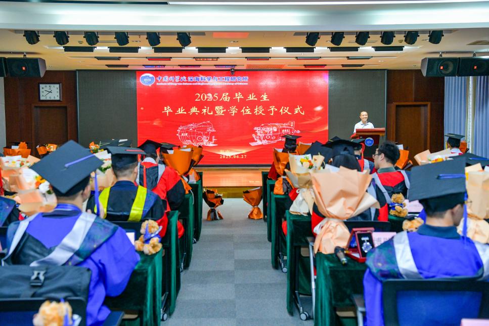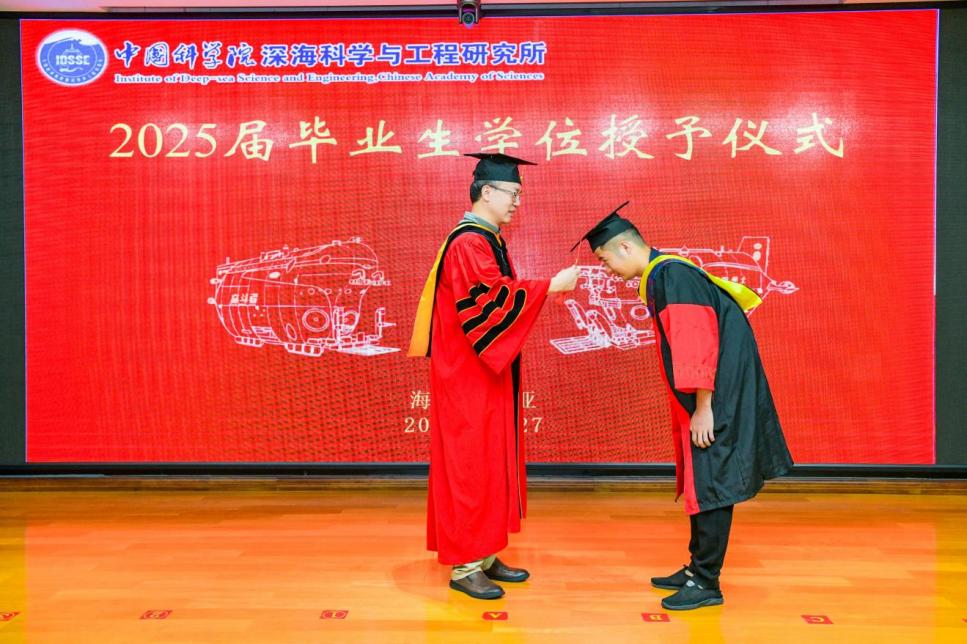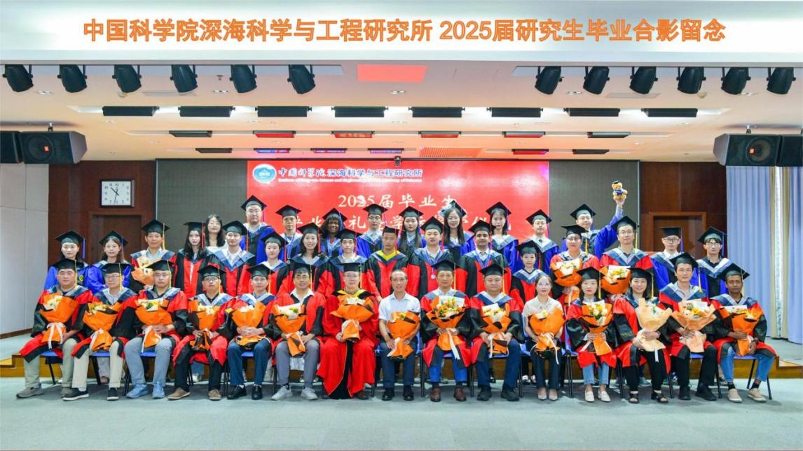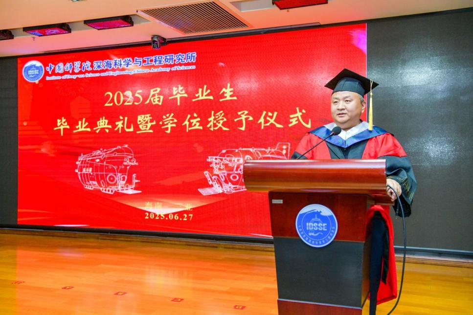 2025年6月27日, 中國科學院深海科學與工程研究所(以下簡稱“深海所”)2025屆研究生畢業典禮暨2024-2025學年優秀學生表彰大會在1003會議室順利舉行。所領導、學位評定委員會委員、研究生導師及人事教育處老師齊聚一堂,共同歡送34名畢業生。會議由崖州灣園區管理部主任張忠主持。