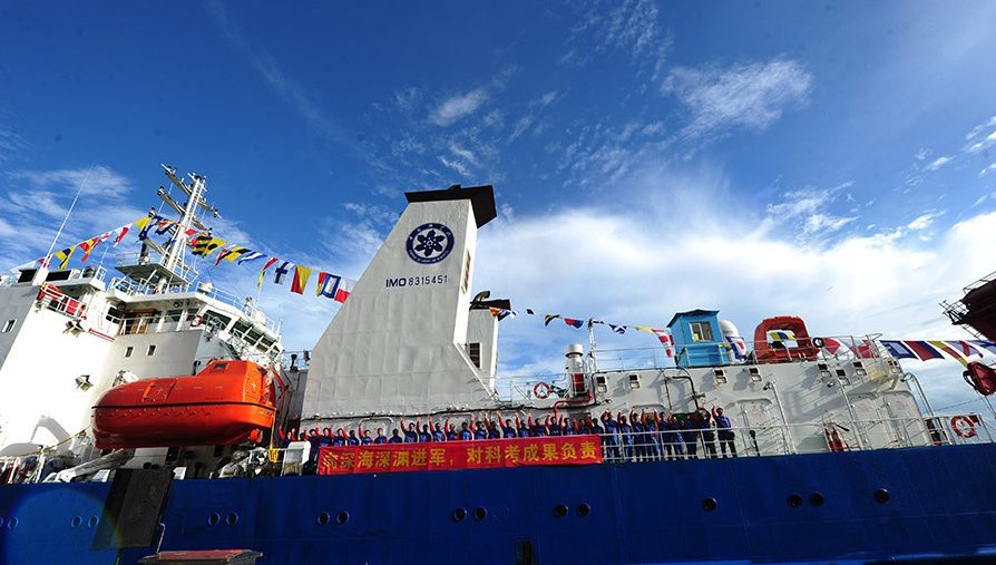 中國4500米載人潛水器及萬米深潛作業(yè)工作母船“探索一號”科考船首航取得圓滿成功