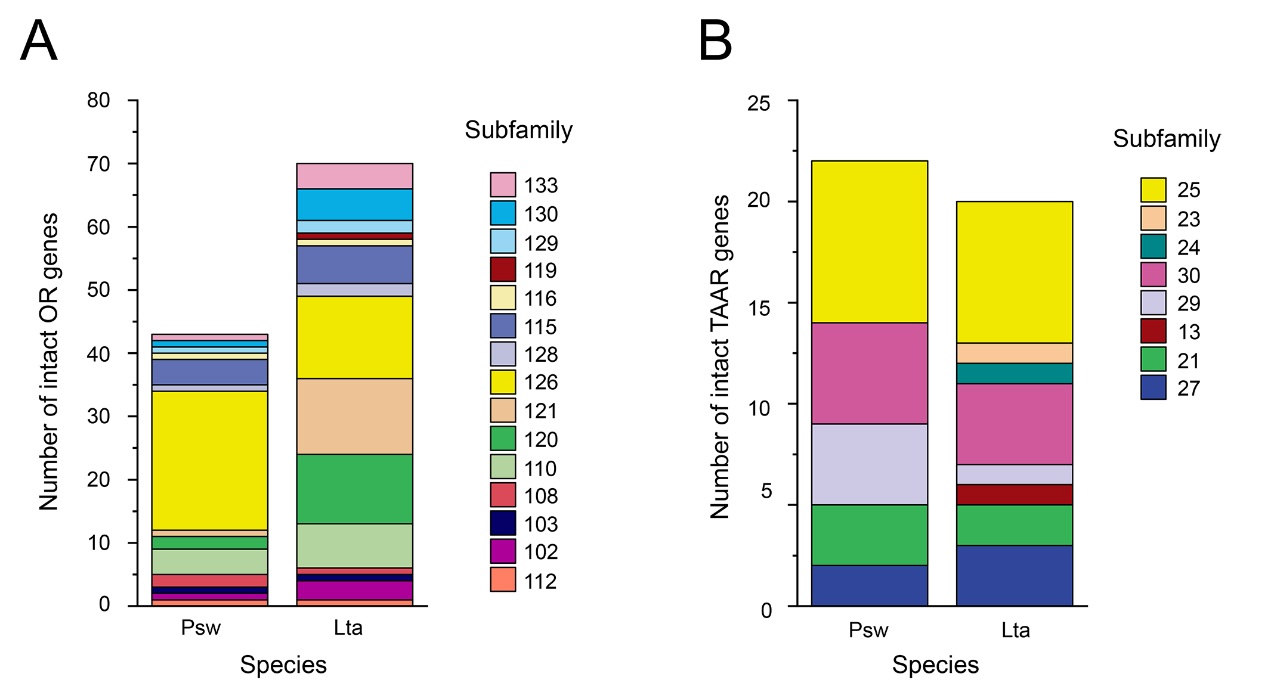 深海獅子魚和潛海獅子魚嗅覺受體基因和痕量氨受體基因數(shù)量比較