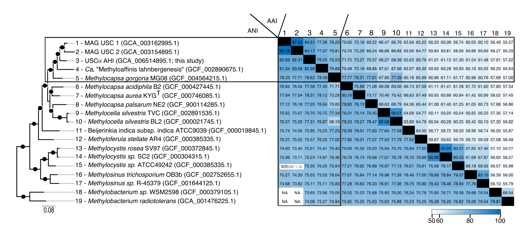 拜葉林克氏菌科甲烷氧化菌與USCα AHI的基因組比較(Rusley et al.,2019