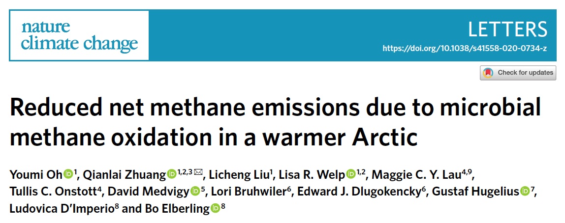 Oh, Y., Zhuang, Q., Liu, L. et al. Reduced net methane emissions due to microbial methane oxidation in a warmer Arctic. Nat. Clim. Chang. 10, 317–321 (2020)