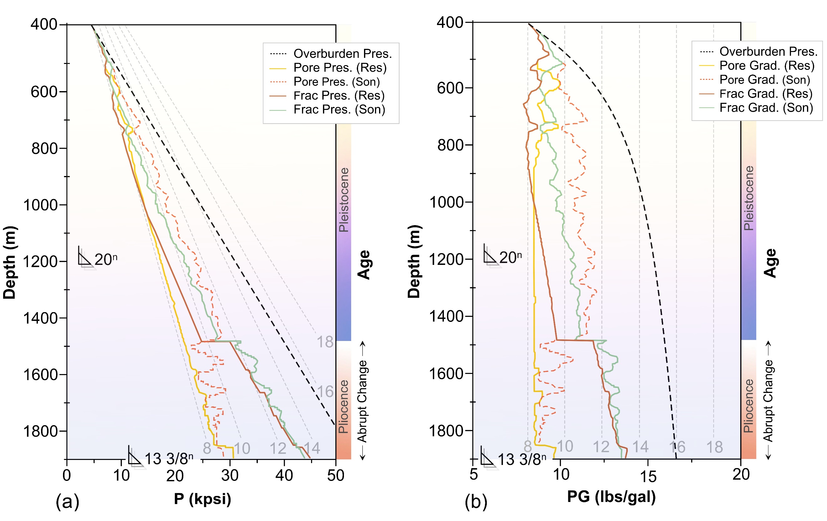 圖4.?綜合覆蓋層和壓力梯度建模顯示了 Makran Subduction Zone 中泥底辟上方垂直應力和孔隙壓力的有效發(fā)展