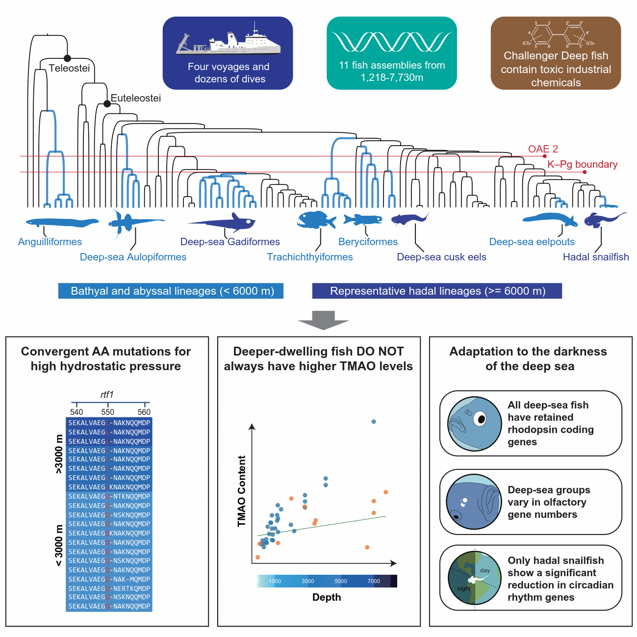 Cell | 環(huán)太平洋深淵魚類基因組,揭秘脊椎動(dòng)物突破高壓生存禁區(qū)的適應(yīng)性重塑和演化軌跡