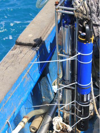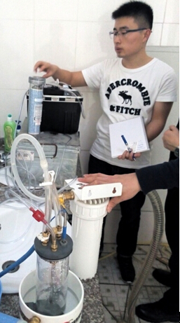 DSSD研究人員對測氡儀及水氣平衡器進行調(diào)試 多參數(shù)水質(zhì)分析儀和潛水泵