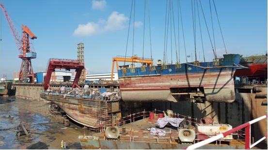 探索一號順利完成船體切割和吊裝工作