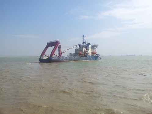 上午八點三十分,在船員餐廳召開海試工作安排會議,重點強調(diào)了海試中的安全注意事項。九點三十分,船舶開始備車。隨后,測試人員開始了解船舶現(xiàn)場、進(jìn)行準(zhǔn)備工作。十時許,備車完畢,解纜完畢,“探索一號”開動側(cè)推,橫向駛離碼頭前往預(yù)定海域,開展海上試驗工作。